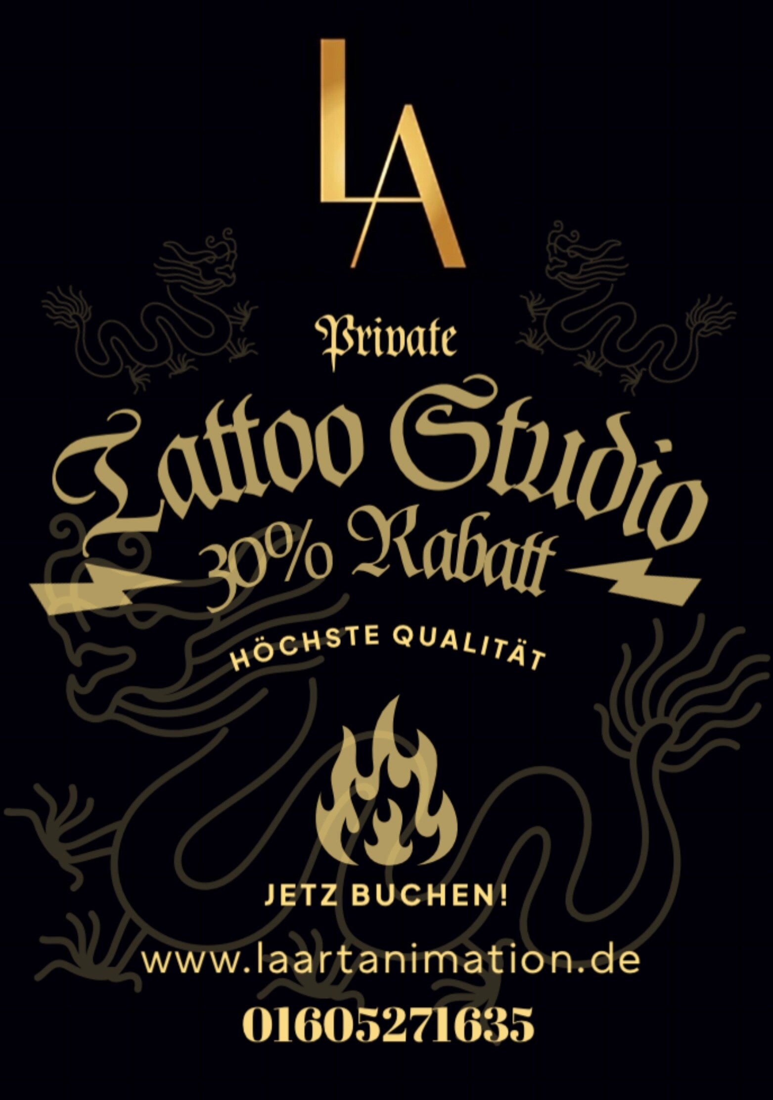 "LA art&animation ist Ihr vertrauenswürdiger Partner für Tattoos in Ahaus. Gegründet mit der Leidenschaft für Kunst und Kreativität, streben wir danach, jedem Kunden ein einzigartiges und personalisiertes Erlebnis zu bieten. Unsere talentierten Künstler nehmen sich die Zeit, Ihre Ideen zu verstehen und sie in ein atemberaubendes Tattoo zu verwandeln. Egal, ob Sie ein Ersttattoo oder ein neues Design für ein bestehendes Tattoo wünschen, bei uns sind Sie in den besten Händen. Mit einem Fokus auf Qualität, Hygiene und Kundenzufriedenheit ist LA art&animation der richtige Ort für Ihr nächstes Tattoo-Projekt."